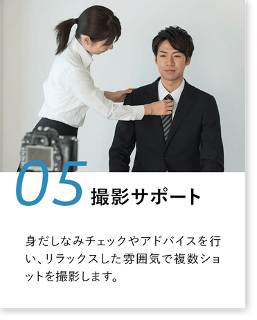 カメラマンがイメージに合わせて、ポーズや表情などアドバイス致します。リラックスして、笑顔のお写真を撮影できるようお手伝い致します。